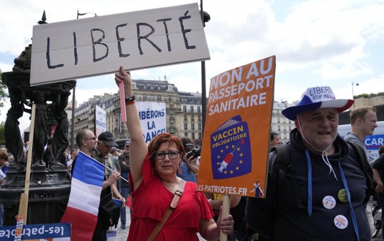 France braced for more protests on Saturday against the upcoming special virus passes that will be needed to enter restaurants, as police took up posts along Paris’ Champs-Elysees to guard against an invasion of the famed avenue by rowdy demonstrators. Some 3,000 security forces deployed around the French capital for a third Saturday of protests.